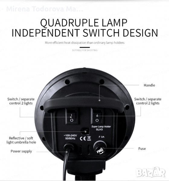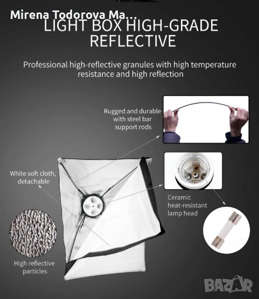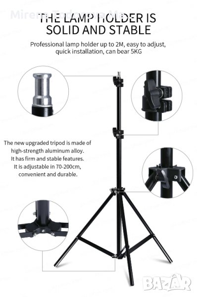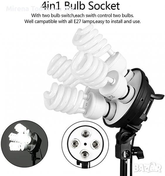професионално оборудване за фото фотография с крушка 15*45W / 3* крушка 5в1 цокъл / 3* софтбокс / 3* Стойка / 1* конзолна пръчка / 1* чанта за носене. Този комплект е идеален за продукти и портрети. Характеристики: професионално оборудване за фотофотография с крушка 15*45W / 3* крушка 5в1 цокъл / 3* софтбокс / 3* Стойка / 1* конзолна пръчка / 1* чанта за носене. 15*45W супер ярки крушки, осигуряват непрекъсната ярка среда за правене на снимки. 15бр крушки могат да се монтират в 3 осветителни стойки с цокъла 5в1. Софтбокс 50*70 см помага за омекотяване на светлината, създаване на равномерна и разсеяна светлина. стойката за осветление е изработена от здрав метал, максимална височина до 2м, което им дава голяма устойчивост за тежка работа. Включена е конзолна пръчка, регулируема дължина от 75 см до 139 см, лесно за подреждане на осветлението. Включена е чанта за носене, удобна за носене. Характеристики: -Ватове на крушката: 45W Цвят на светлината: Бял Цветова температура: 5500K Напрежение: 200-240V - 5in1 Тип щепсел на гнездо за крушка: Предпазител на EU щепсел: 3A -Цвят на софтбокс: черен и сребрист Размер: 50*70cm/19, 7 * 27. in -Light Стойка Материал: Метал Сгънат Дължина: 67cm / 26.4in Макс. Размер: 200 см / 78,7 инча - Конзолна пръчка Материал: алуминиева сплав Регулируема дължина: 75 см-139 см / 29,5 инча-54,7 инча Размер на опаковката: 80 * 32 * 33 см / 31,5 * 12,6 * 13,0 инча Опаковка Списък: 13,0 инча 12 кг. : 15 * 45 W крушка 3 * цокъл за крушка 3 * Софтбокс 3 * Стойка за осветление 1 * Конзолна пръчка 1 * Чанта за носене