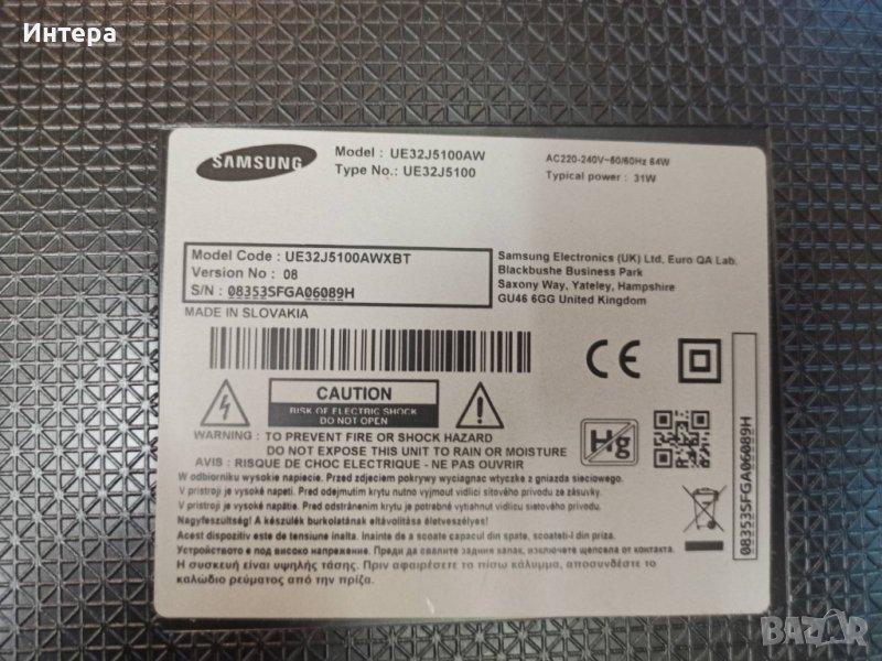 Платките са работещи, демонтирани от Samsung UE32J5100AW, GH032BGA-B3 със счупен дисплей.