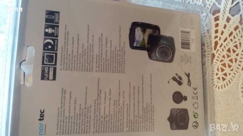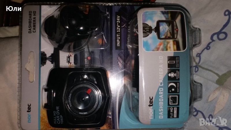 Продавам видеорегистратор на френската марка Nor tec.Служи за заснемане и записване на пътната обстановка пред вашия автомобил.Много добра резолюция,12 пиксела е камерата екран 2,4 инча.В комлекта има стойка два кабела за зареждане.Закепена е от Франция