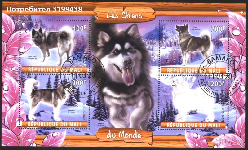 Клеймован блок Фауна Кучета 2020 от Мали.