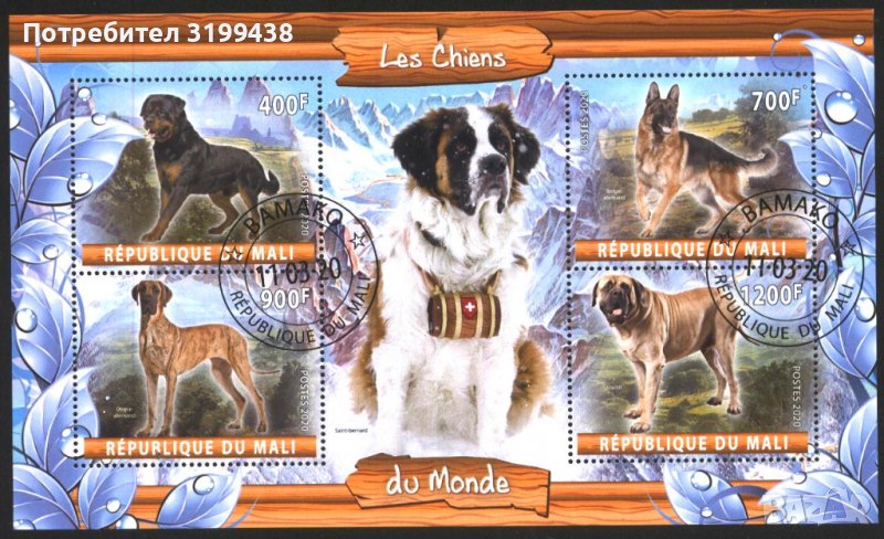 Клеймован блок Фауна Кучета 2020 от Мали.
