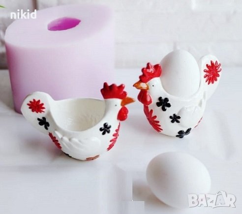 3D Кокошка петле поставка за яйце яйца Великденски силиконов молд форма калъп гипс кашпа → Обява 36900533