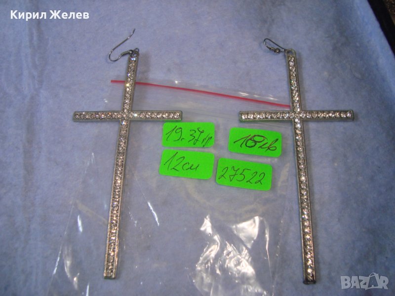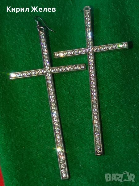 ПОСРЕБРЕНИ МОДНИ ГОЛЕМИ КРЪСТОВИДНИ АРТ ОБЕЦИ с ФАСЕТИРАНИ КРИСТАЛИ 27522