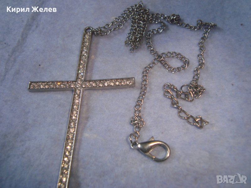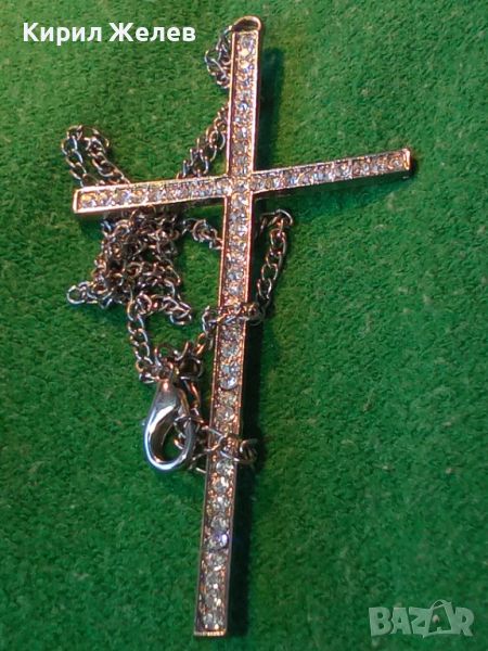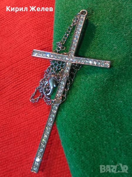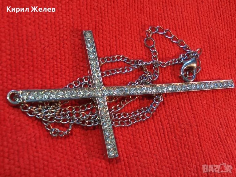 ПОСРЕБРЕН КРЪСТОВИДЕН МОДЕН АРТ МЕДАЛЬОН с КРИСТАЛИ и ВЕРИЖКА 31535