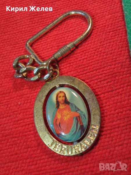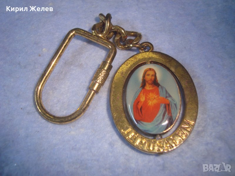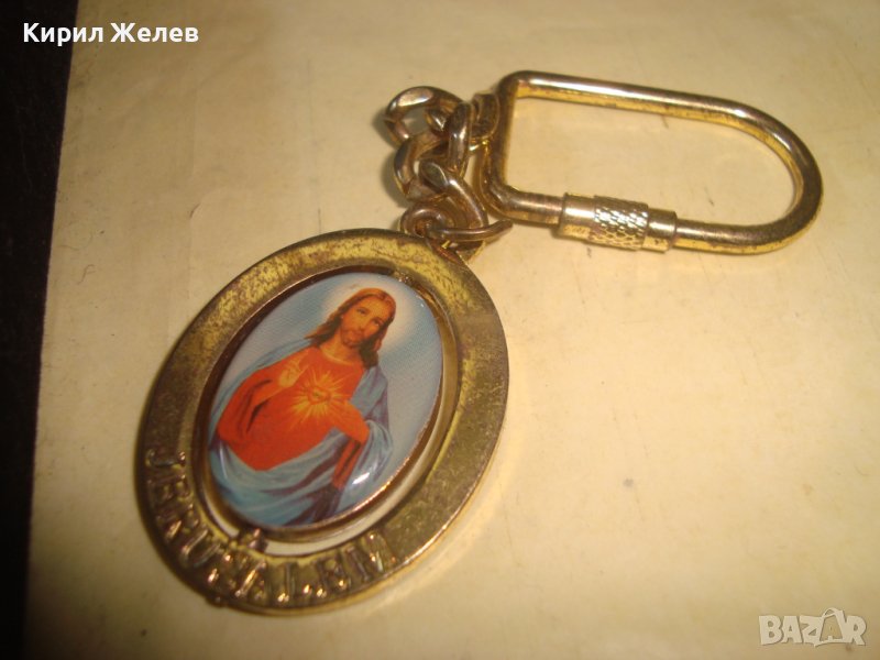 ЗДРАВ ХУБАВ ЗЛАТИСТ КЛЮЧОДЪРЖАТЕЛ с ИКОНКА ВЪРТЯЩА се ДВУСТРАННА - ЙЕРУСАЛИМ - СУВЕНИР 27524