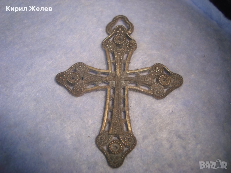СТАРО АЖУРНО ПАТИНИРАНО ПОСРЕБРЕНО НАГРЪДНО КРЪСТЧЕ СТАРИНЕН ФИЛИГРАНЕН СТИЛ 87191