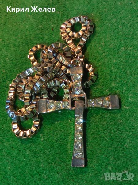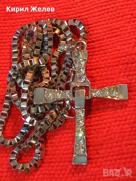 ПОСРЕБРЕН МОДЕН КРИСТАЛЕН АРТ КРЪСТО МЕДАЛЬОН РАЗДВИЖЕН с ВЕРИЖКА 81405