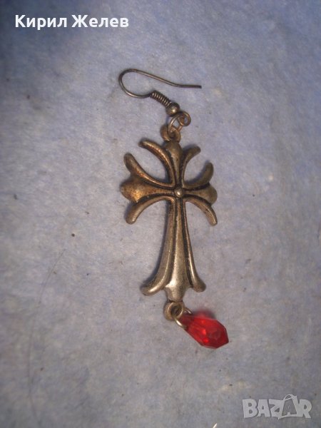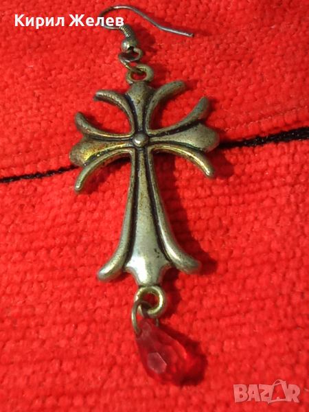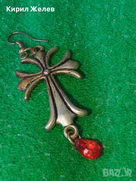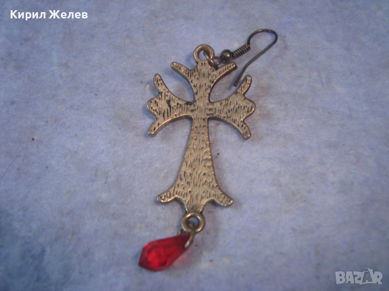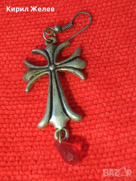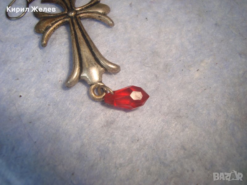 ПОСРЕБРЕНА АРТ КРЪСТОВИДА ОБЕЦА с ЧЕРВЕНО ФАСЕТИРАНО КРИСТАЛЧЕ ПОДХОДЯЩА и за ВИСУЛКА МЕДАЛЬОН 10908