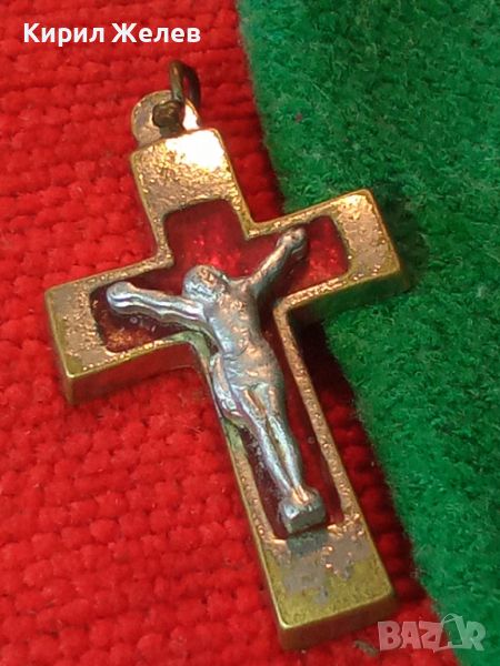 СТАРО БРОНЗОВО ПОСРЕБРЕНО РАЗПЯТИЕ КРЪСТЧЕ с ЕМАЙЛ-ЛАК 21238