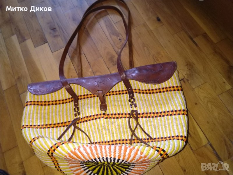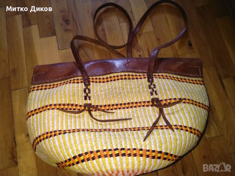 Бутикова Чанта 46х34 см естествена кожа и плетени нишки от промазан плат дебела → Обява 36903810
