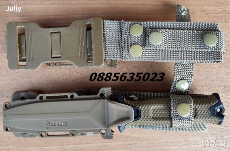 Също се предлага с черна, кафява и зелена дръжка и кания/ножница/
