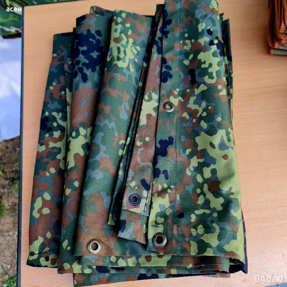Камуфлажни платнища с капси Тип Flecktarn, снимка 1 - Къмпинг мебели - 36905615 Камуфлажни платнища с капси Тип Flecktarn, снимка 2 - Къмпинг мебели - 36905615 Камуфлажни платнища с капси Тип Flecktarn, снимка 3 - Къмпинг мебели - 36905615 Камуфлажни платнища с капси Тип Flecktarn, снимка 4 - Къмпинг мебели - 36905615 Камуфлажни платнища с капси Тип Flecktarn, снимка 5 - Къмпинг мебели - 36905615 Камуфлажни платнища с капси Тип Flecktarn, снимка 6 - Къмпинг мебели - 36905615 Камуфлажни платнища с капси Тип Flecktarn, снимка 7 - Къмпинг мебели - 36905615 1/7