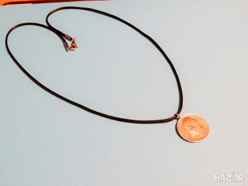 Медальон с рядък сребърен 1 лев 1913г Фердинандъ 1 с вързанка сребро