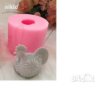 3d кокошка кокошчица с цвете силиконов молд форма калъп фондан шоколад гипс свещ сапун → Обява 36906562
