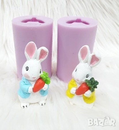 3d Зайче заек с морков цилиндър силиконов молд форма калъп фондан шоколад гипс свещ сапун → Обява 36906594