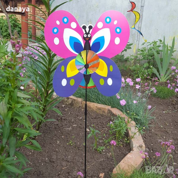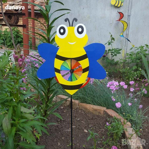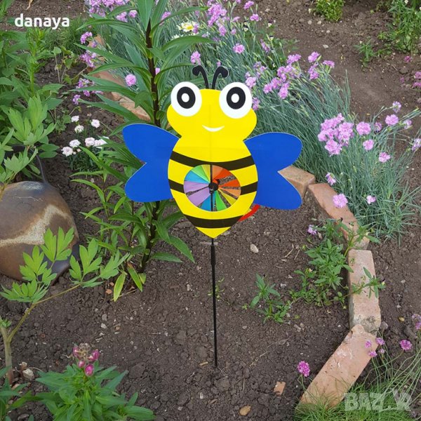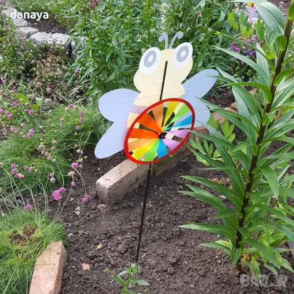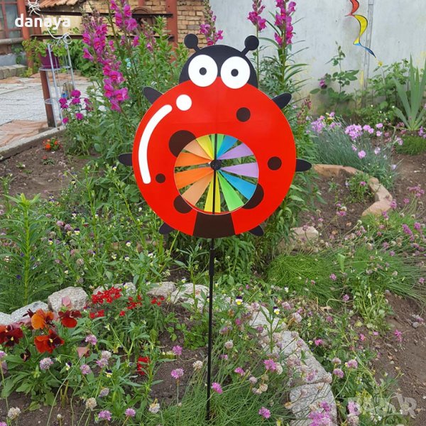 Градинска декорация. Украса за градини и балкони – вятърна въртележка с форма на различни животинчета – пате, калинка, пеперудка и пчеличка. Ветровъртележка в свежи ярки цветове, които ще внесат лятно настроение, където и да я поставиш. Въртележката се върти от вятъра. Може да я поставиш в градината като декорация или на балкона.