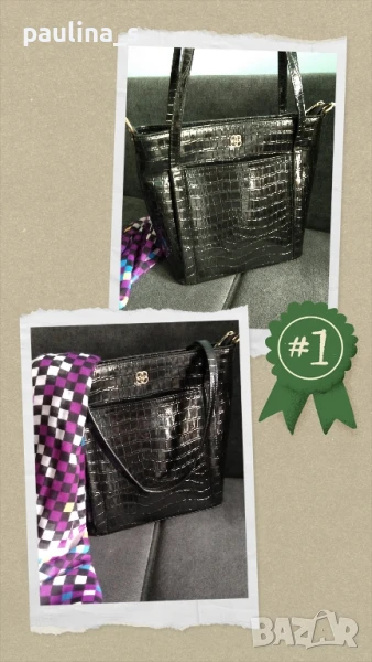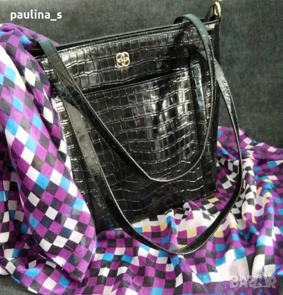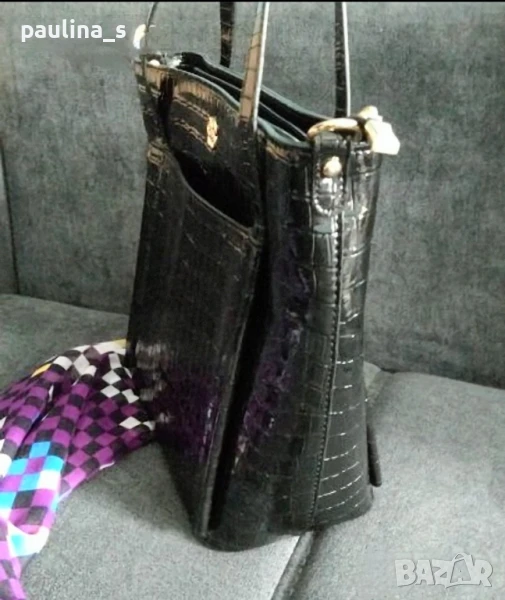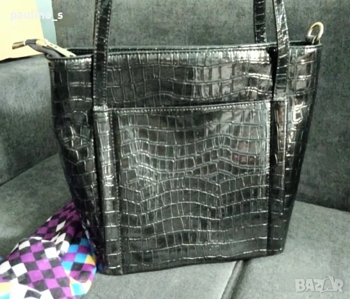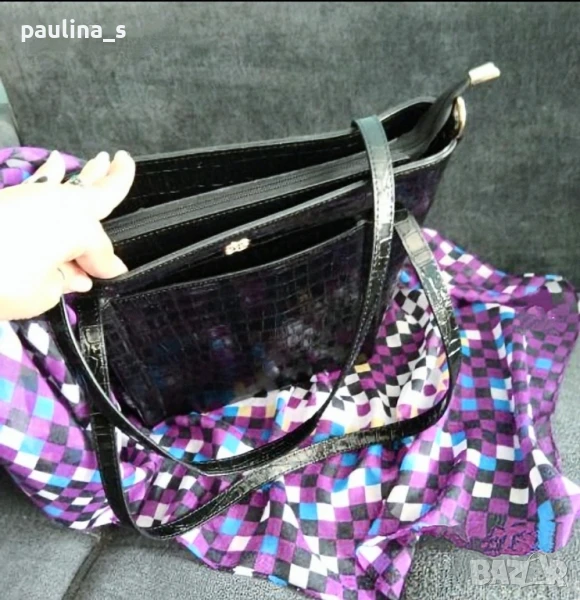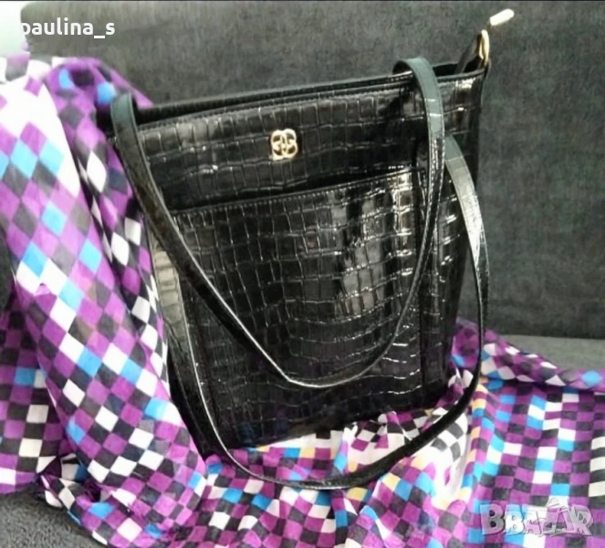 лачена чанта в кроко принт. Цената е крайна 19,99лв. Луксозна лачена чанта с кроко ефект и ергономично разпределение. Има по един външен джоб отпред и отзад, две отделения и вътрешен среден джоб с цип, удобно джобче за смартфон и джобче с цип за документи. Чантата е тежка, без дефекти, незабележими забележки на дръжките, съобразена цена! 34см / 27см / 12см дъно / 70см дръжки. Шалът е огромен, от 100% памук с весели цветове 100см / 98см - цена 14,99лв и не се делят, а цената е сборна. Моля, разгледайте и другите обяви и последвайте профила. Приятно разглеждане. Може да създадете пакет и да използвате доставката, тогава ще направя отстъпка от общата цена. При единична поръчка, цената не се коментира по никакъв начин, продажбата е с благотворителна цел! За лечение! Благодаря за вниманието 🙂