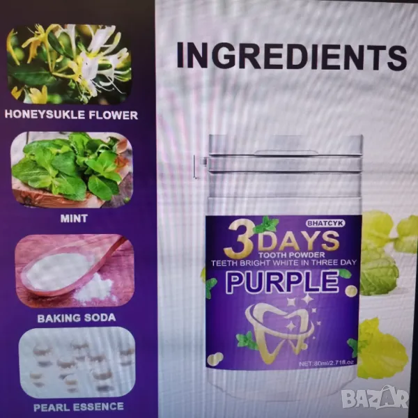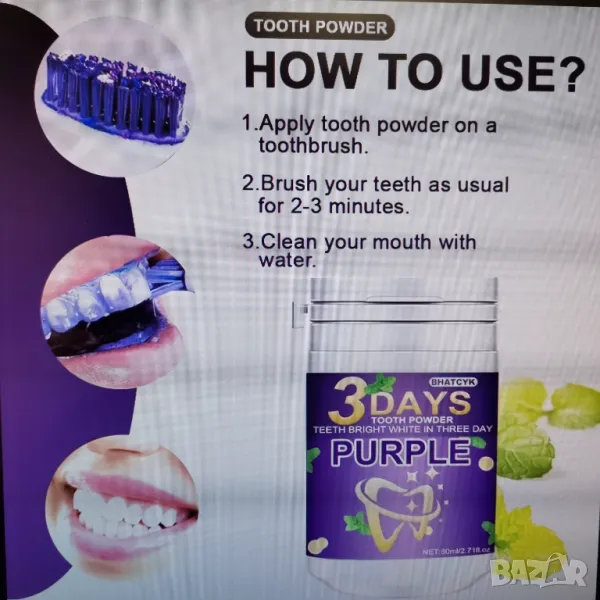 Продавам различни продукти за избелване на зъби. Предимно избелващ Прах/Пудра със мента и избелващи писалки. Посочената цена е за Пудрата. Наличните писалки на Putimi Whitening са на цена 7.70€