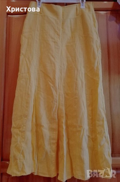 Дълга разкроена жълта пола-лен,L → Обява 36913198