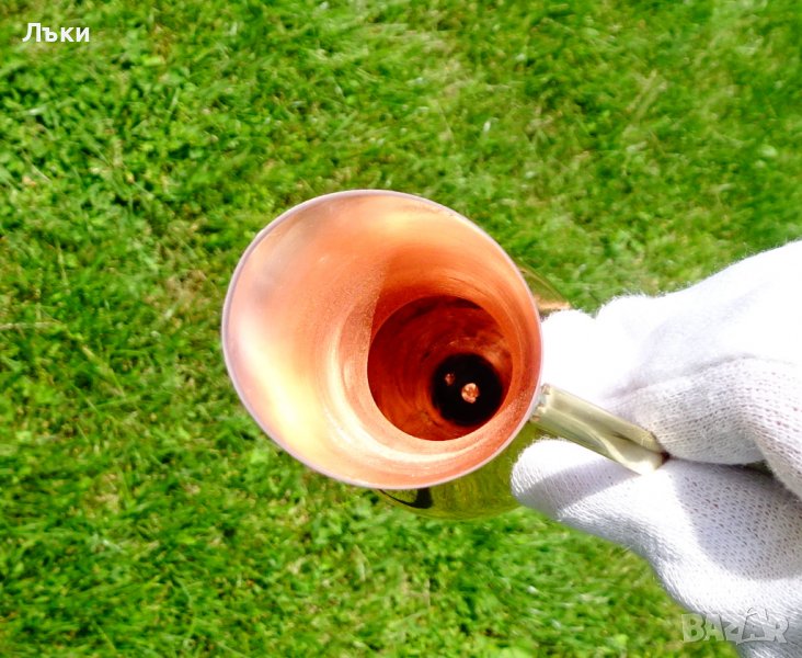 е изработена от бронз.Височина 17 см.,диаметър 5 см.,тегло 130 гр.Вместимост 160 мл.