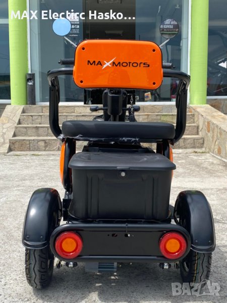 Уникална триместна триколка MaxMotors X1 - без аналог на пазара. Триколката е с дигитално табло, три нива на скоростта, стопове, мигачи и габарити,LED фар. Предна и задна ръчни спирачки. Крачна спирачка. Голям кош за багаж. Триколката е с вградена втора седалка за допълнителен пасажер, като самата седалка се движи във височина, което създава удобство за нисък или висок човек + подарък трета малка седалка.