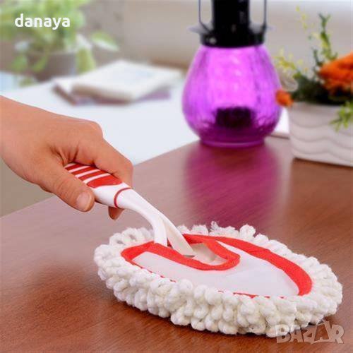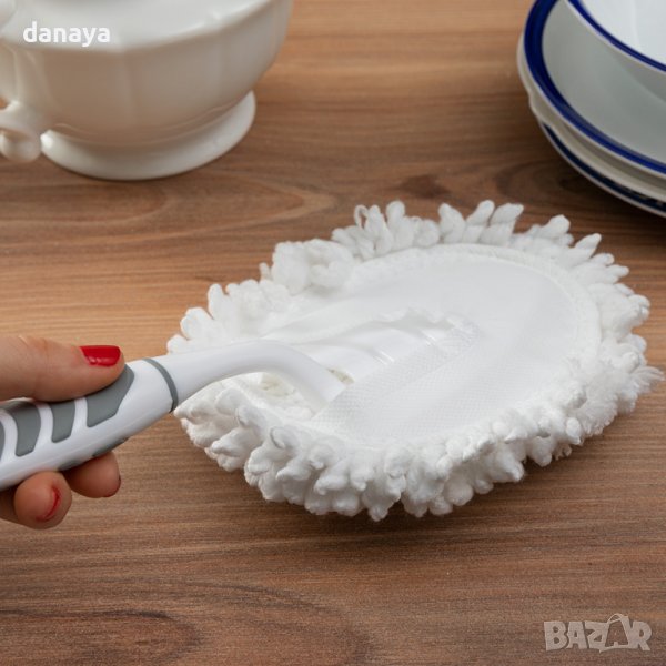Микрофибърна четка за прах със сменяема почистваща част, която може да се пере в пералня. С тази четка почистването на мебелите и предметите върху тях вече ще бъде лесно и бързо благодарение на меките микрофибърни влакна, които са като магнит за малки частици прах. Изключително мека материя, която предпазва от надраскване по мебелите. Четката е идеална за почистване на дома или офиса.