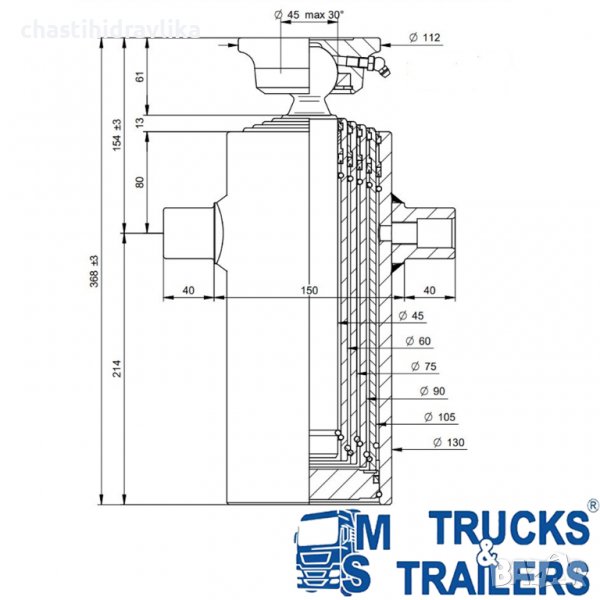 За монтирането на този Хидравличен цилиндър са необходими допълнителни елементи, които се заплащат отделно.