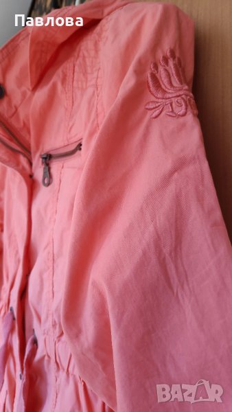 Якето е с подплата, подходящо за пролет, лято и есен.Има вграден ластик в кръста за удобство. Джобчета. Качулката е неподвижна.