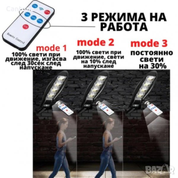 Функциите на лампата се контролират от бутона до фотоклетката или от дистанция посредством дистанционно управление.