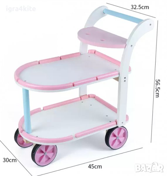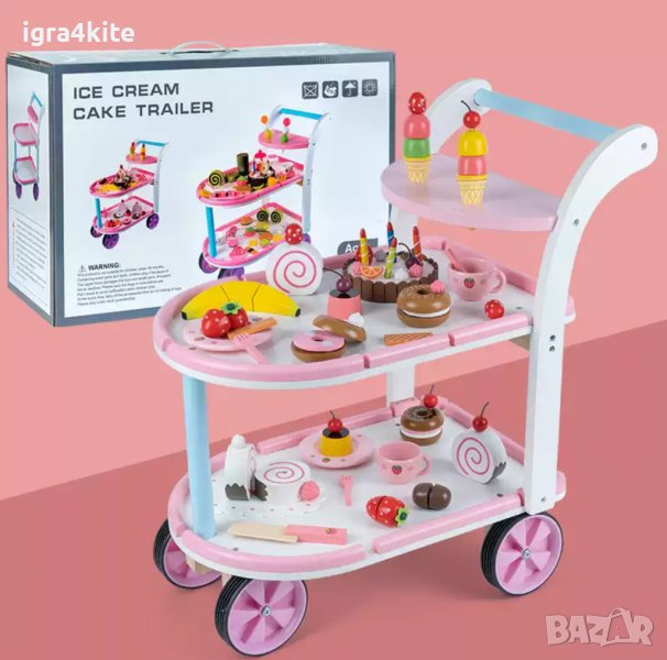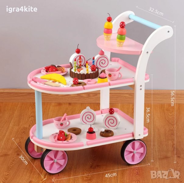 Ново! Голяма дървена количка поднос с кексове и много аксесоари