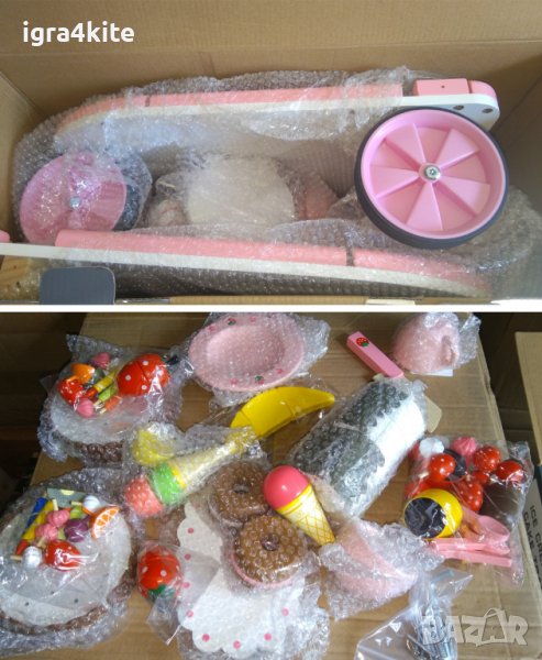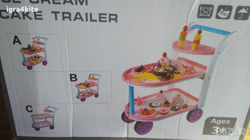Съдържа множество магнитни дървени аксесоари като : банан, сладоледи, кексове, торти, чашки, керамични чинийки, поставки, табла и т.н.