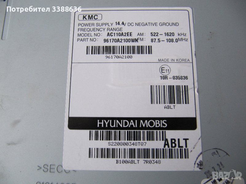 АС110А2ЕЕ /КМС-HYUNDAI MOBIS/ подходящо за модела след 2012г. до 2018г.