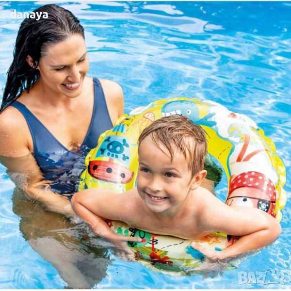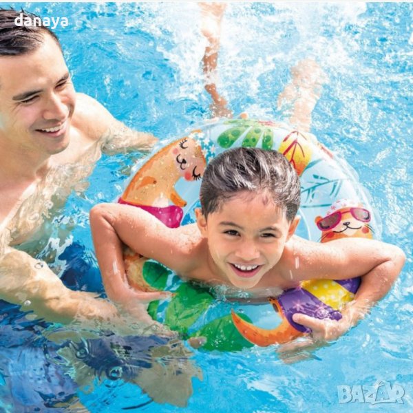 Детски надуваем пояс за плуване в море или басейн в много свежи летни цветове с принт на морски обитатели. Надуваем аксесоар за плуване и много летни забавления!