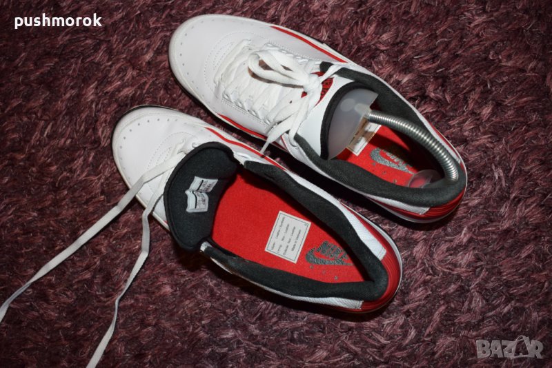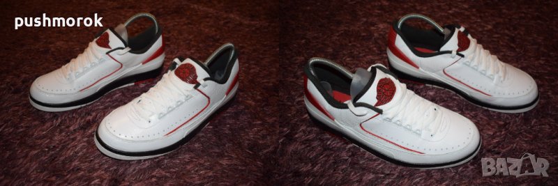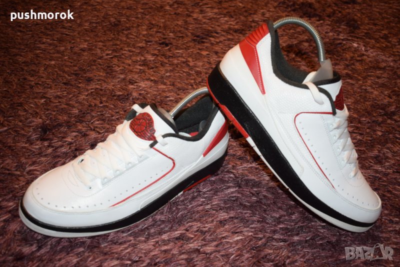 Air Jordan 2 Retro Low 'Chicago' беше с цветен стил пуснат през 1987 г. Преиздадена през май 2016 г., тази ремастерирана ретро версия включва бяла първокласна кожена горна част с детайли на "гущер", акценти от Varsity Red и черен цвят на подложката и междинна подметка.