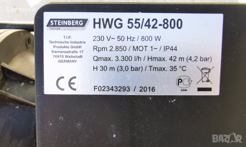 Хидрофорна помпа"STEINBERG HWG 55/42-800":-
