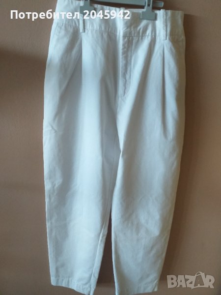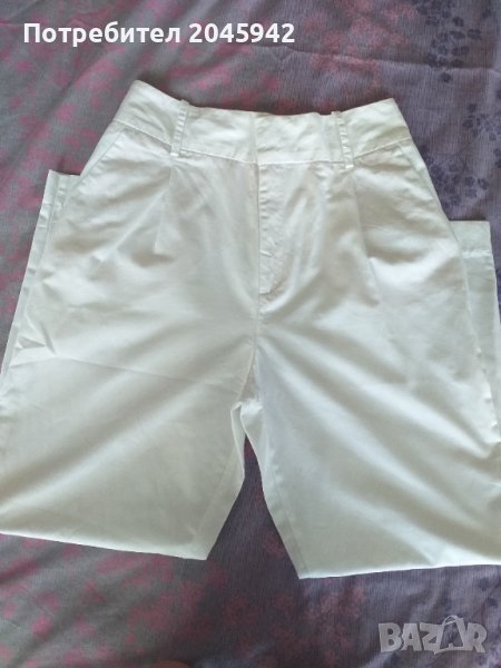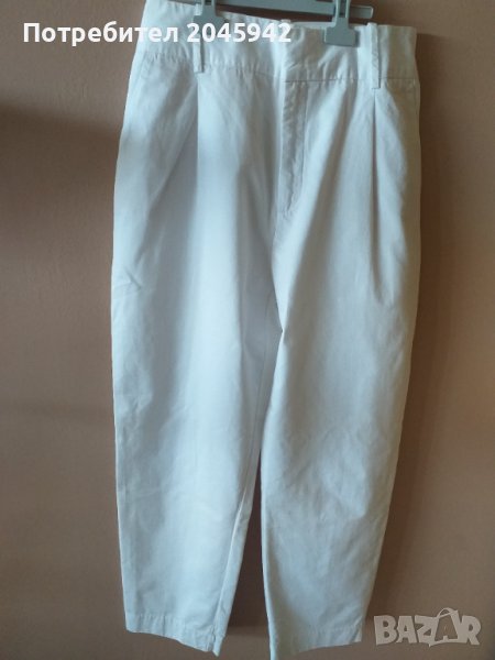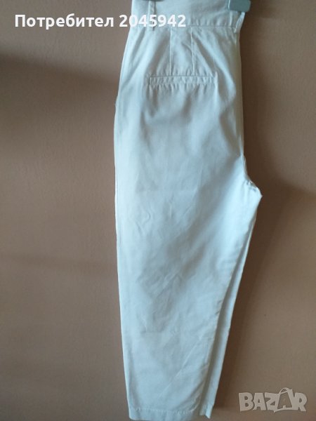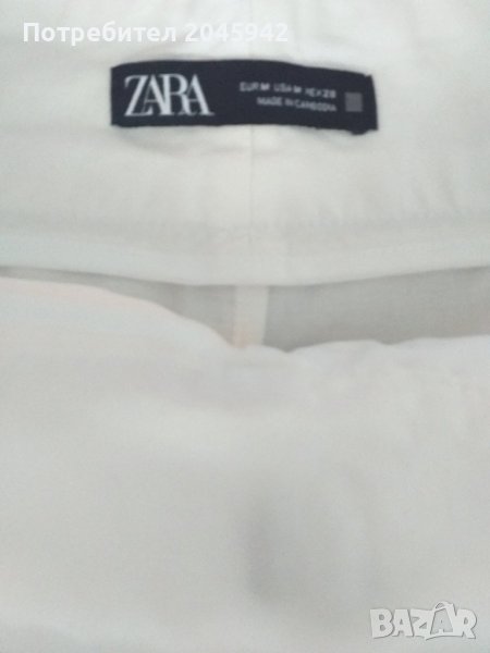 Летен панталон Zara в бял цвят.Дължина-97 см.,талия- 81см.,ханш-113 см.Състав: 87 % памук и 13% лен.Отлично състояние,без забележка,използван веднъж за определен случай.