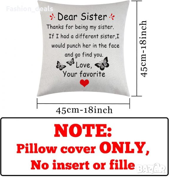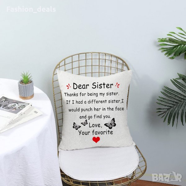 Нова калъфка за декоративна възглавница с послание за сестра Подарък → Обява 36937749