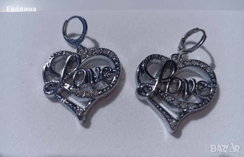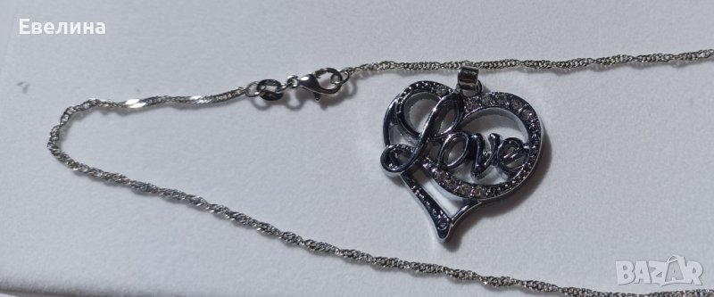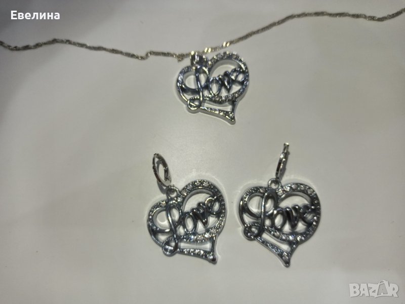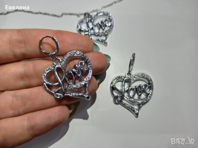 Дамски комплект синджирче LOVE, висулка и обеци, щампа 925, нов → Обява 36939253