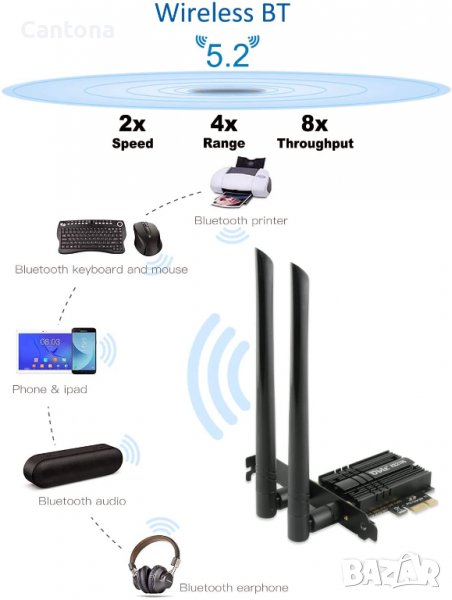 Bluetooth 5.2 технология: Нашият Bluetooth използва най-новата технология 5.2, която разширява обхвата от 4 Bluetooth сигнала, няма нужда да се притеснявате, че сигналът е слаб в стаята и чака дълго време за транспортиране на големите файлове, Blue-tooth 5.2 ще реши този проблем и може да бъде свързан с мишката, слушалките, клавиатурата и други Bluetooth устройства (Забележка: Нужен е кабел към дънната платка 9 pin, не е включен)