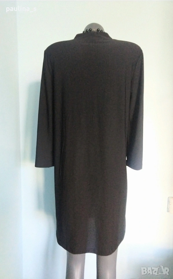 1️⃣. M / 2XL - "Mango". Цената е крайна, без пазарлъци 20 евро. Официална рокля тип туника за повод или офис, нова без забележки. Моделът е обран, деколтето е шпиц, много прецизна изработка на ниво. Ръкавите са 7/8, надолу е с разкроение. Материята е микрофибърна релефна ликра, луксозна, еластична и немачкаема. Една Изтънчена дреха. Колието е от "