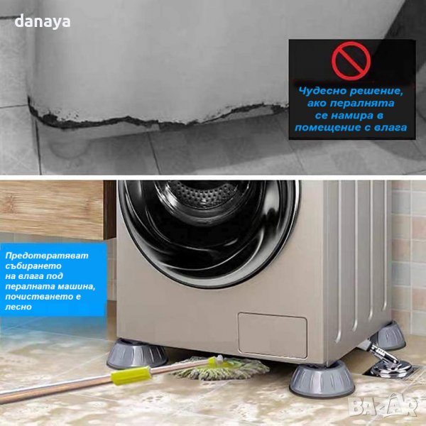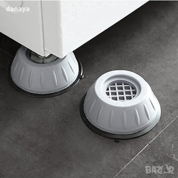 Антивибрационни подложки за пералня, сушилна или други уреди и мебели, спират клатенето на пералнята благодарение на неплъзгаща се, абсорбираща звука гума! Отървете се от неприятните шумове и защитете машината и пода си!