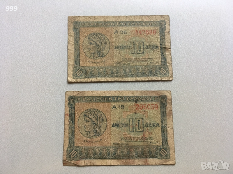 25 000 драхми 1943, 1000 драхми 1935, 10 драхми 1940 Гърция → Обява 36949295