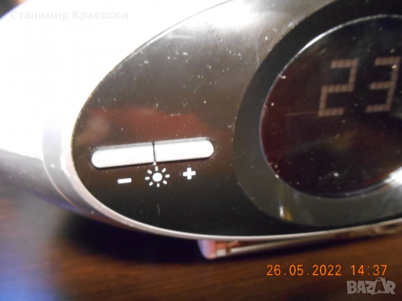 Радио часовника работи безпроблемно но екранчето няма осветление Лампата също работи и се настроива силата на 4 нива Има двойна аларма и цифрово радио Приемлив външен вид - има тук таме дръскотини на места макар и малки Мощоста е 2 х 2.5вата