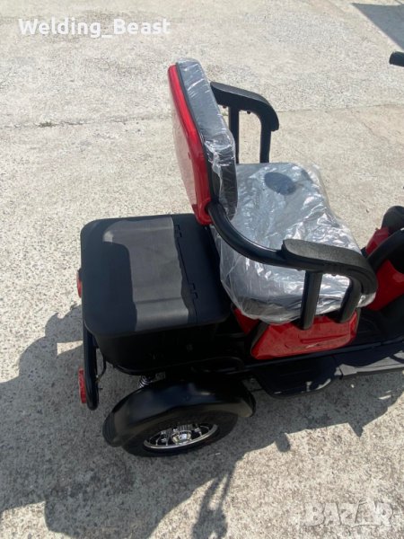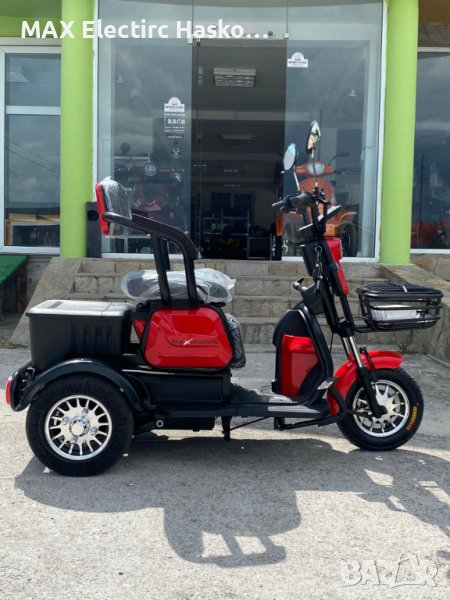 Уникална триместна триколка MaxMotors X1 - без аналог на пазара - модел 2023 година. Триколката е с дигитално табло, три нива на скоростта, стопове, мигачи и габарити,LED фар. Предна и задна ръчни спирачки. Крачна спирачка. Голям кош за багаж. Триколката е с вградена втора седалка за допълнителен пасажер, като самата седалка се движи във височина, което създава удобство за нисък или висок човек + подарък трета малка седалка.