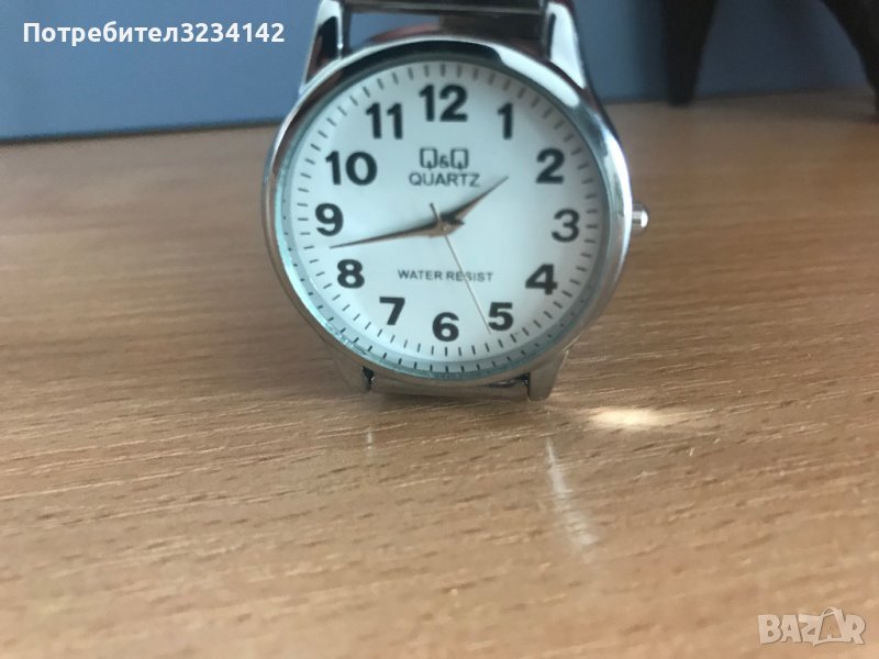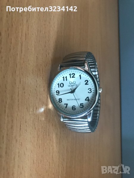Чисто нов мъжки часовник, става и за жени , но го дават за мъжки заради по-големия му диаметър в каишката . Много удобен за носене с ластична каишка . Слага се и се сваля по-бързо и по-лесно от обикновената каишка със закопчаване . Без батерия .