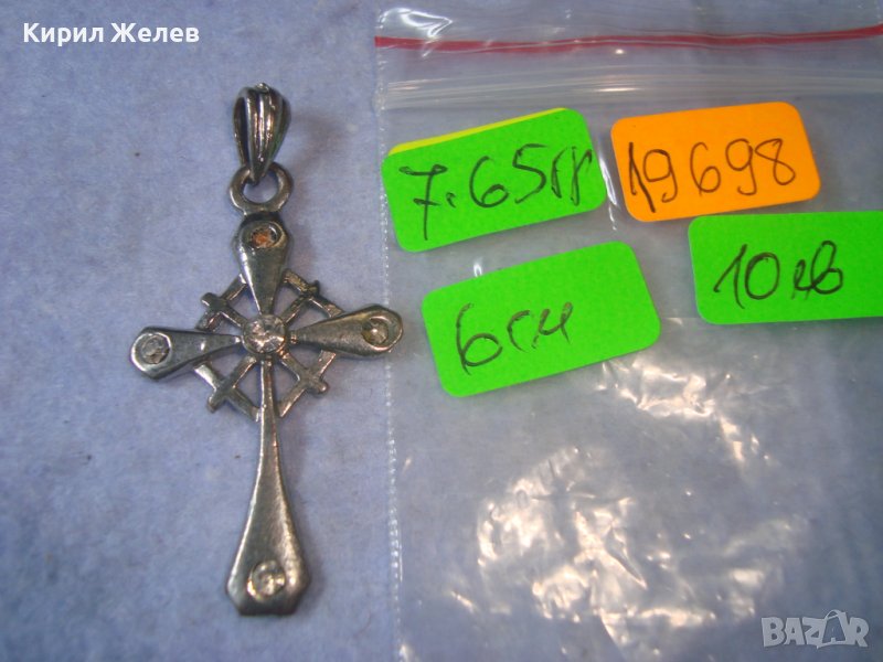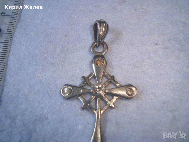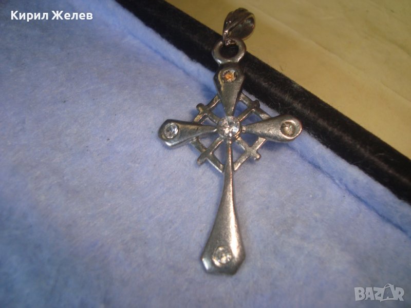 КРАСИВО ПОСРЕБРЕНО СТАРО КРИСТАЛНО КРЪСТЧЕ АЖУРНО 19698