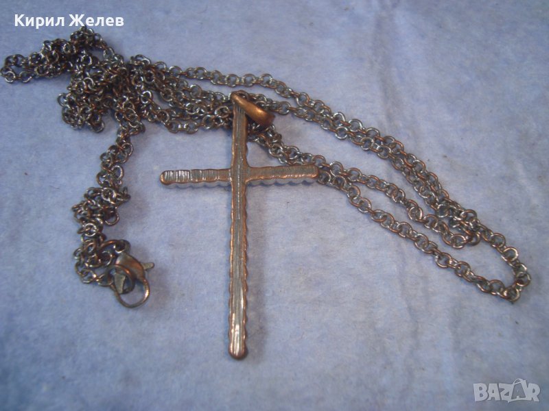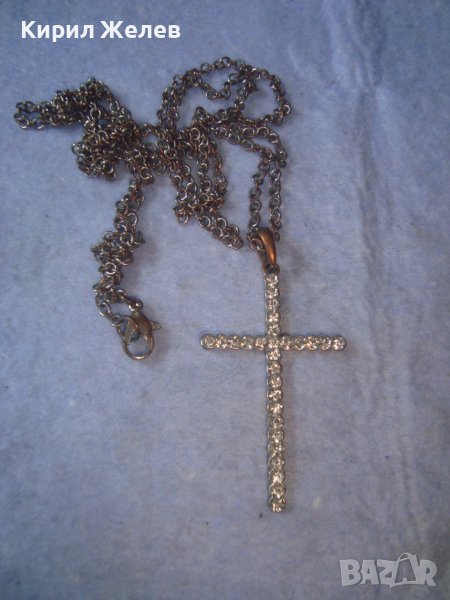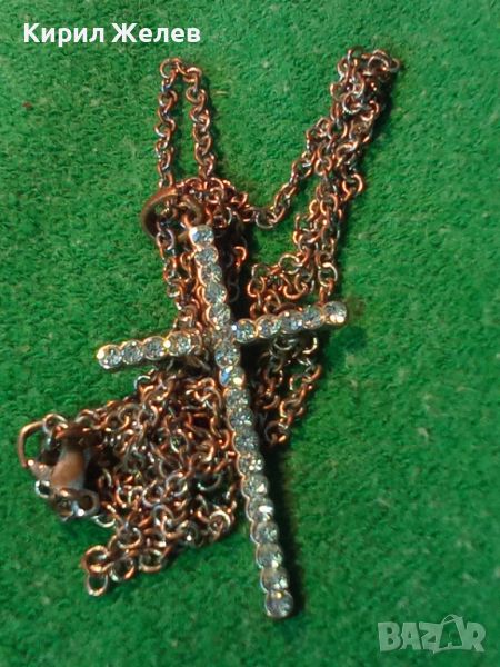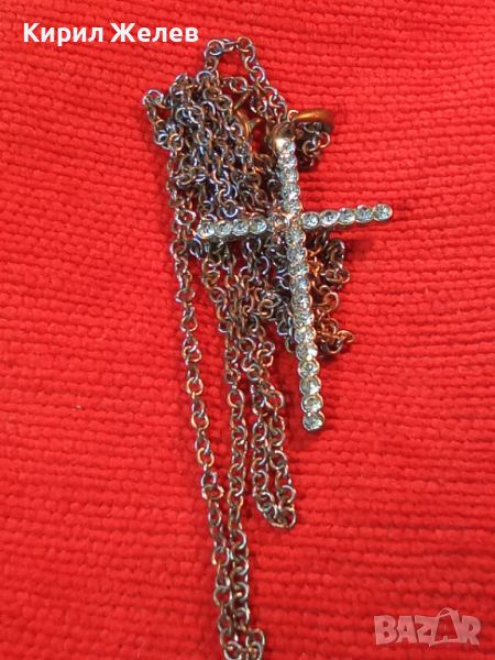 СТАРО УКРАСЕНО с МНОГО КРАСИВИ ФАСЕТИРАНИ КРИСТАЛИ АРТ КРЪСТЧЕ с ВЕРИЖКА КОЛИЕ 21524
