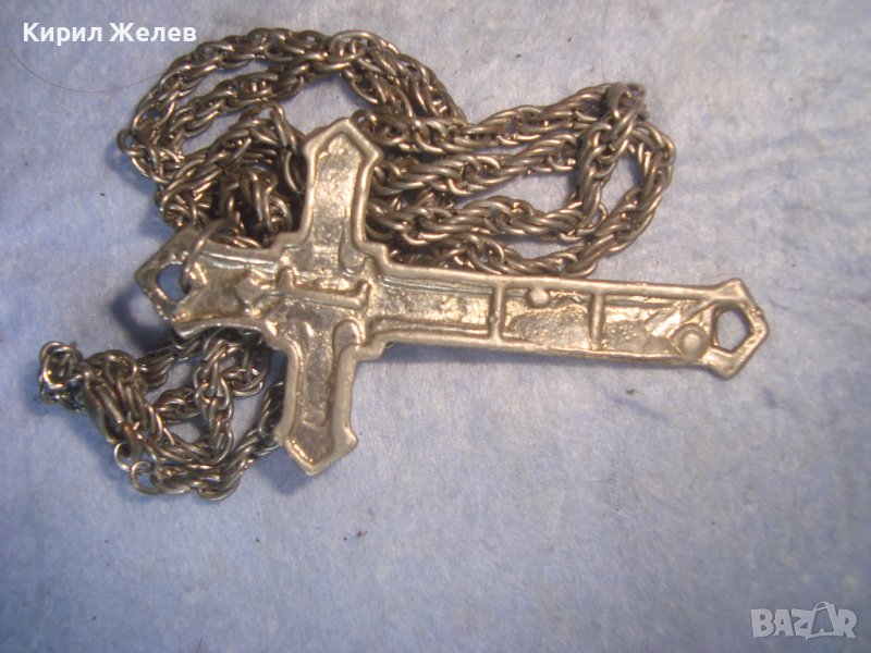 ПОСРЕБРЕНО ГОТИК-СТИЛ РАЗПЯТИЕ КРЪСТЧЕ с КРАСИВА ВЕРИЖКА РЕТРО ПЛЕТКА 8736