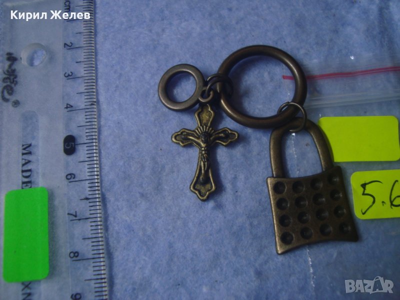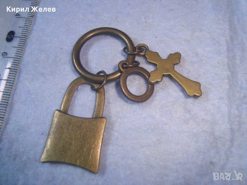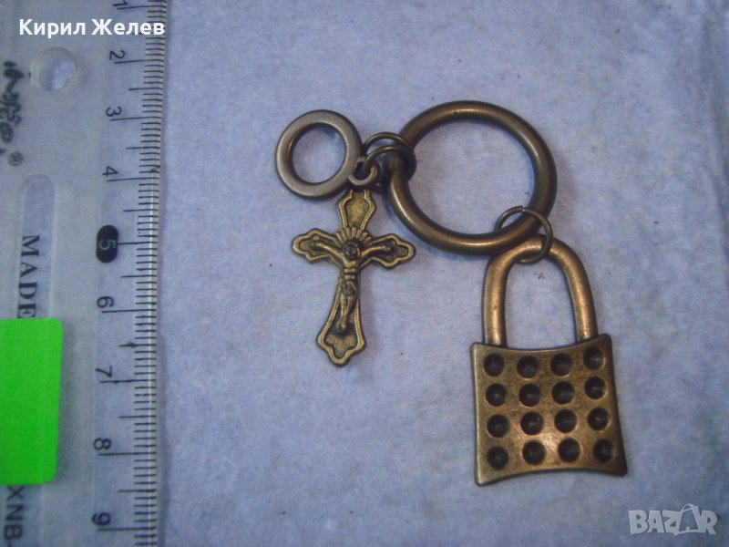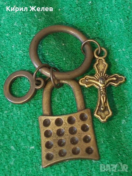 ИНТЕРЕСНА ВИНТИДЖ МЕСИНГОВА АРТ ВИСУЛКА КАТИНАРЧЕ За КЛЮЧОДЪРЖАТЕЛ с КРЪСТЧЕ РАЗПЯТИЕ 27452