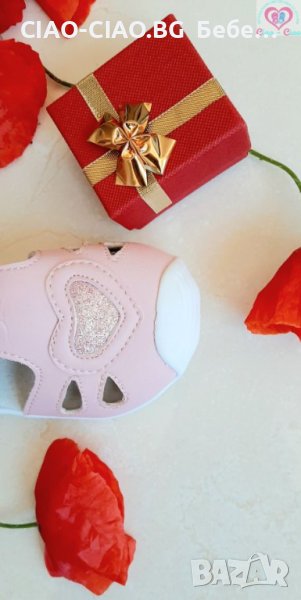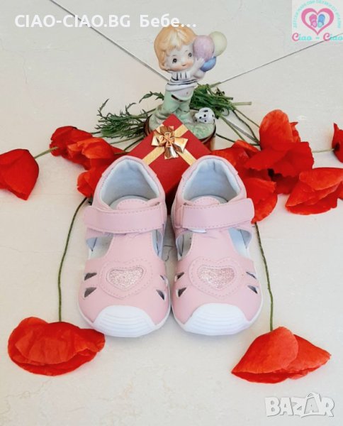 Страхотни бебешки затворени сандали за момиче, розови с брокатено сърце BUBBLE KIDS